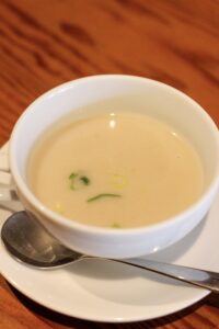 蓮根のポタージュはマイルドな口当たりでとってもホットする味!☺️