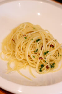 パスタは季節限定メニューやペペロンチーノ、カルボナーラ等の定番メニューから数種類から選べるよ!🍝