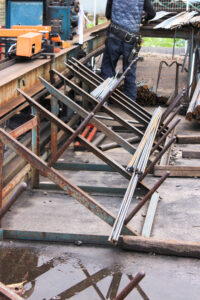 鉄筋を図面から拾い出した通りに曲げたり切ったりした後、構造物にぴったりはまるように加工を施すんだって😳🔩🔨