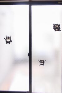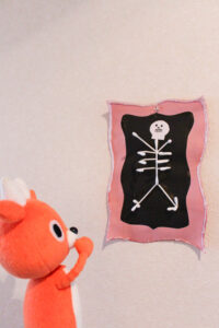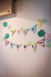 制作活動で、綿棒ガイコツアートを作成したものを壁一面に張っていたよ!個性的でとっても素敵だったな☠️💓